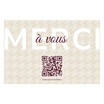 Une carte remerciement avec un QR code imprimé, permettant d’accéder directement au tutoriel de couture du sac.