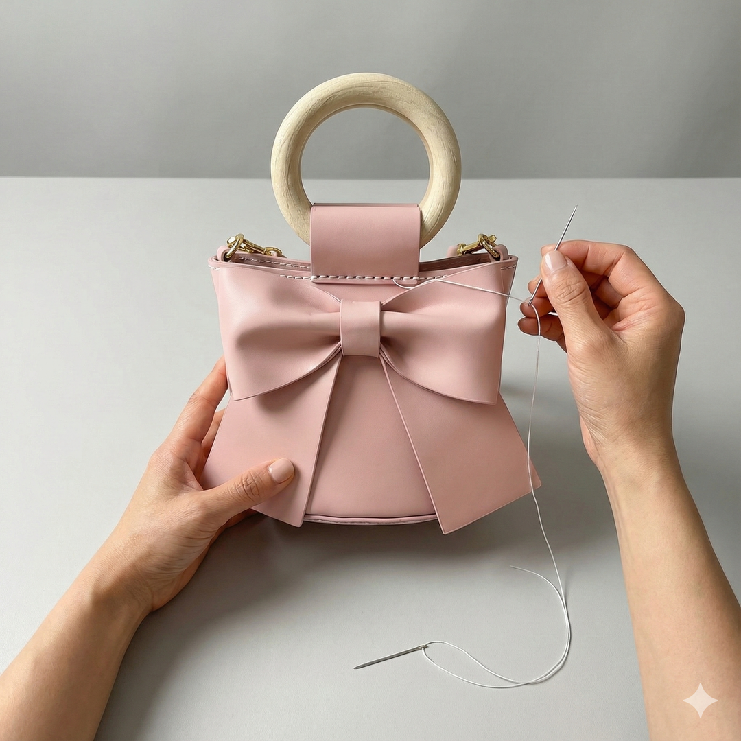 De rien d'autre que vos mains. Le kit contient tout : pièces prédécoupées, fil ciré, aiguilles, quincaillerie et accès au tutoriel vidéo. Aucune machine à coudre, aucun outil supplémentaire.
