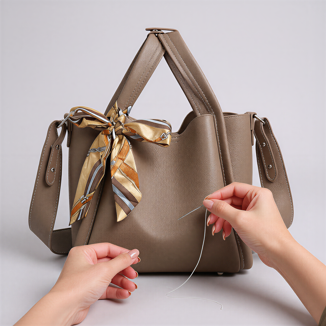 De rien d'autre que vos mains. Le kit contient tout : pièces prédécoupées, fil ciré, aiguilles, quincaillerie et accès au tutoriel vidéo. Aucune machine à coudre, aucun outil supplémentaire.