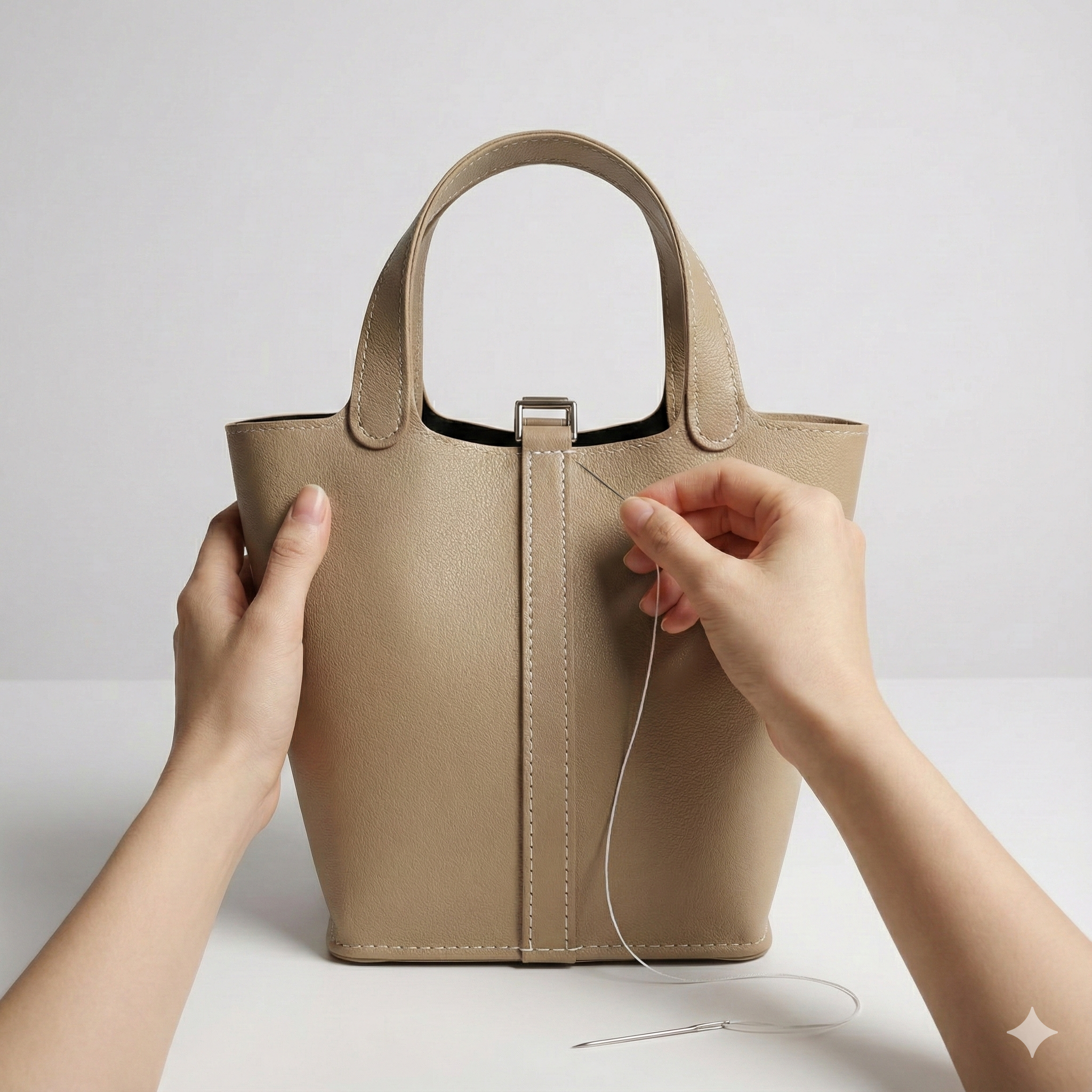 Les pièces du sac soigneusement découpées, un fil ciré élégant, des aiguilles adaptées, les vis et sangles assorties, ainsi qu’une carte d’accès aux tutoriels vidéo pour vous guider pas à pas.