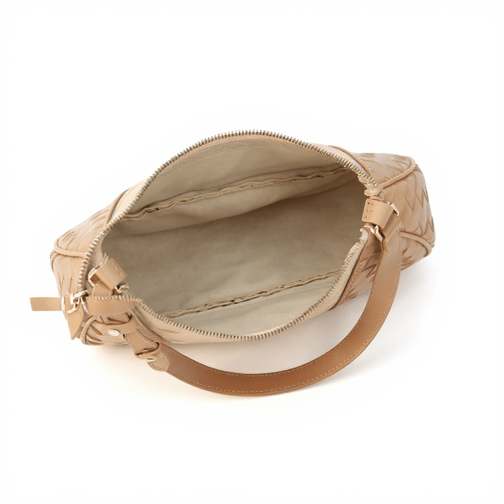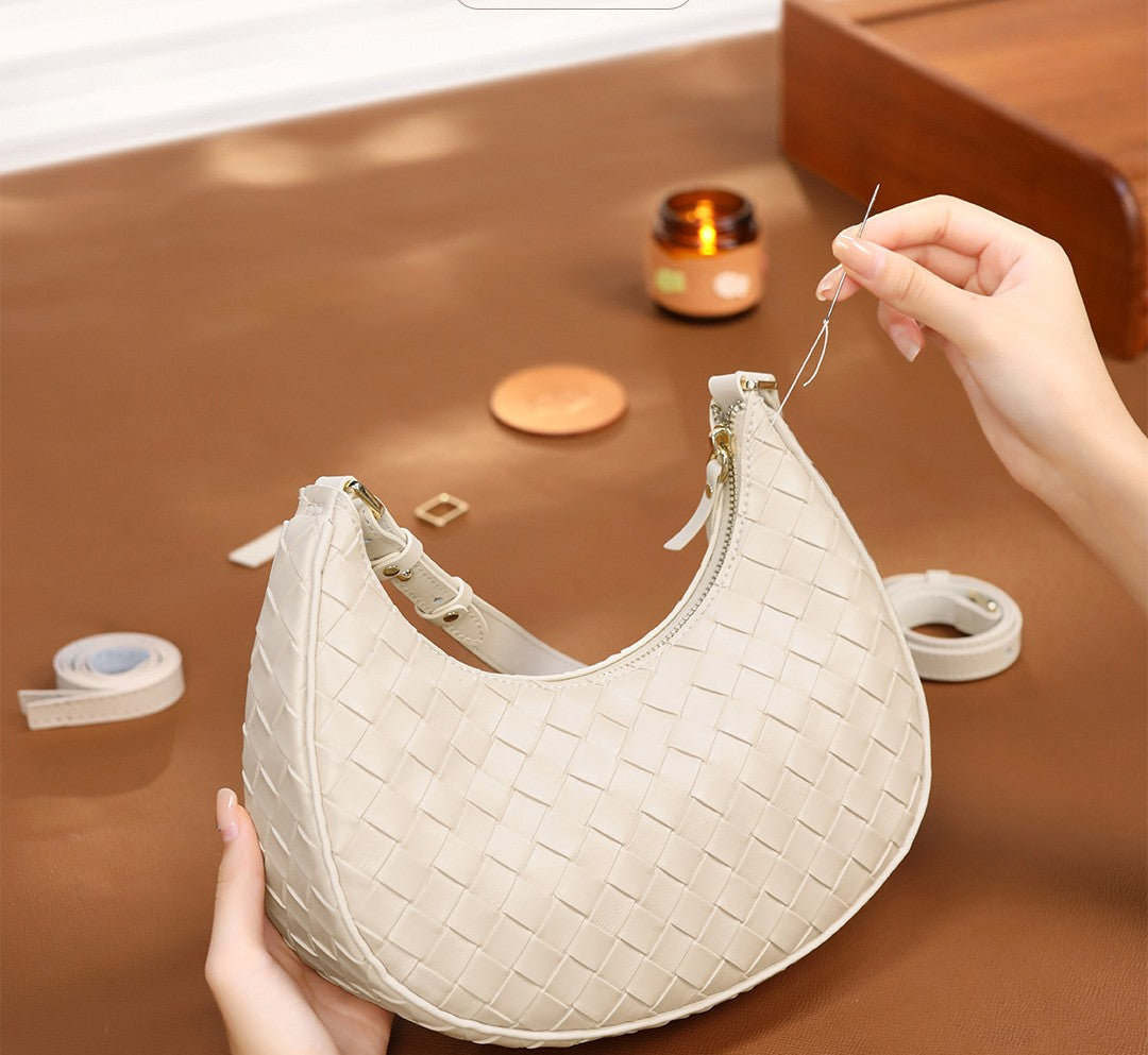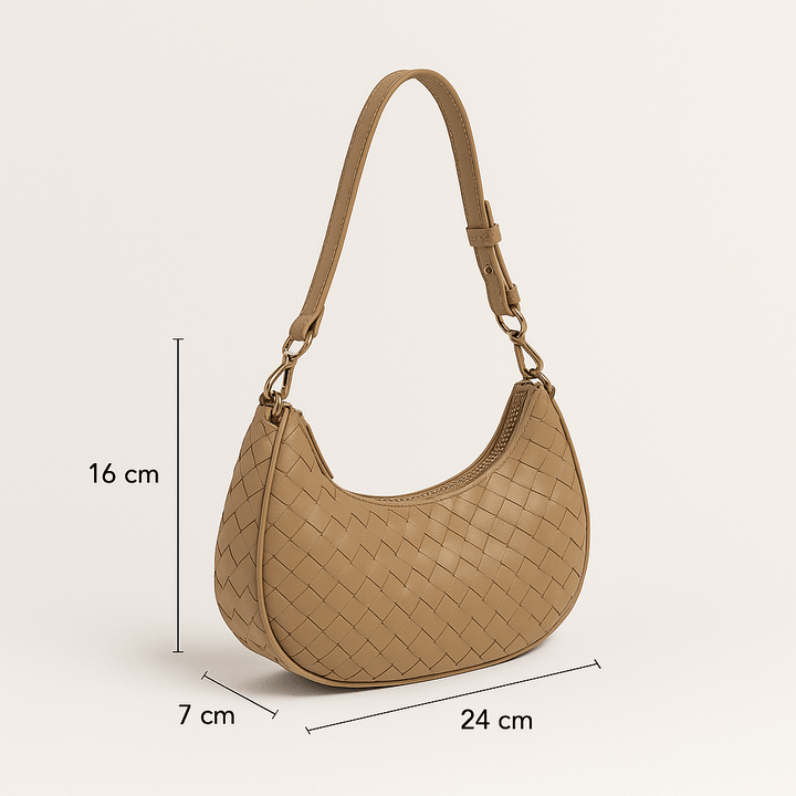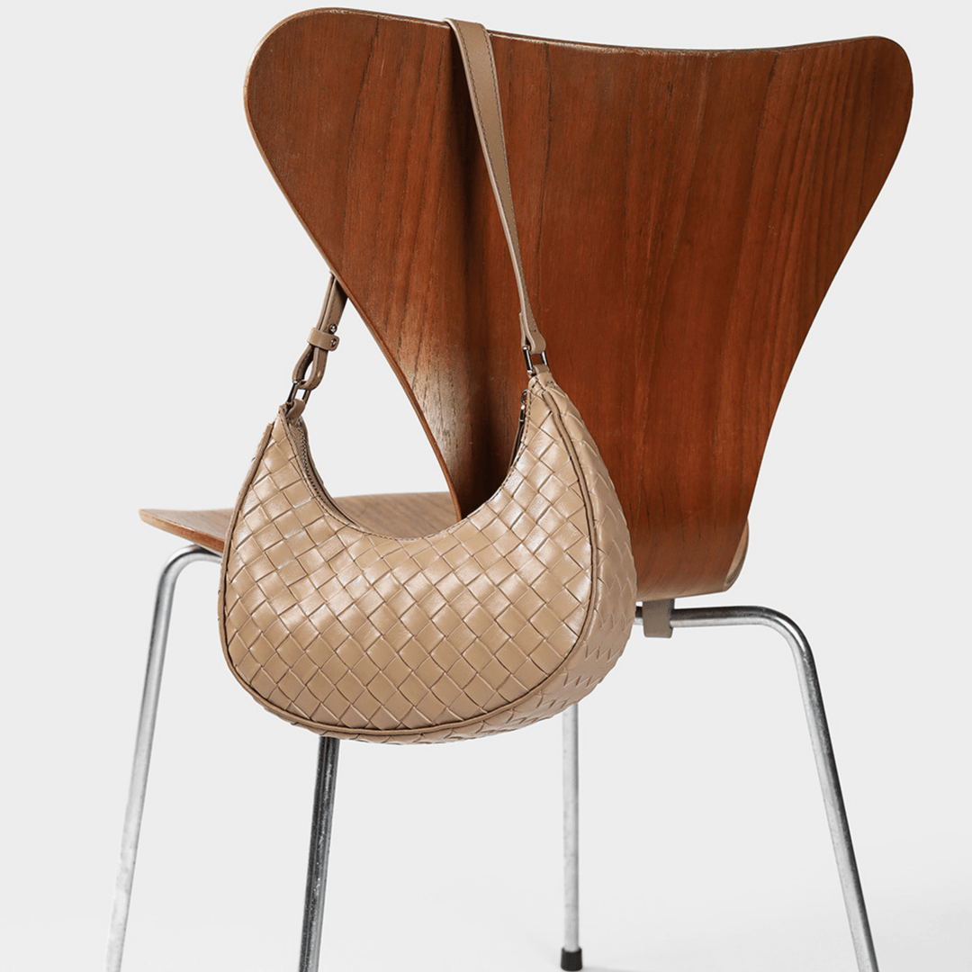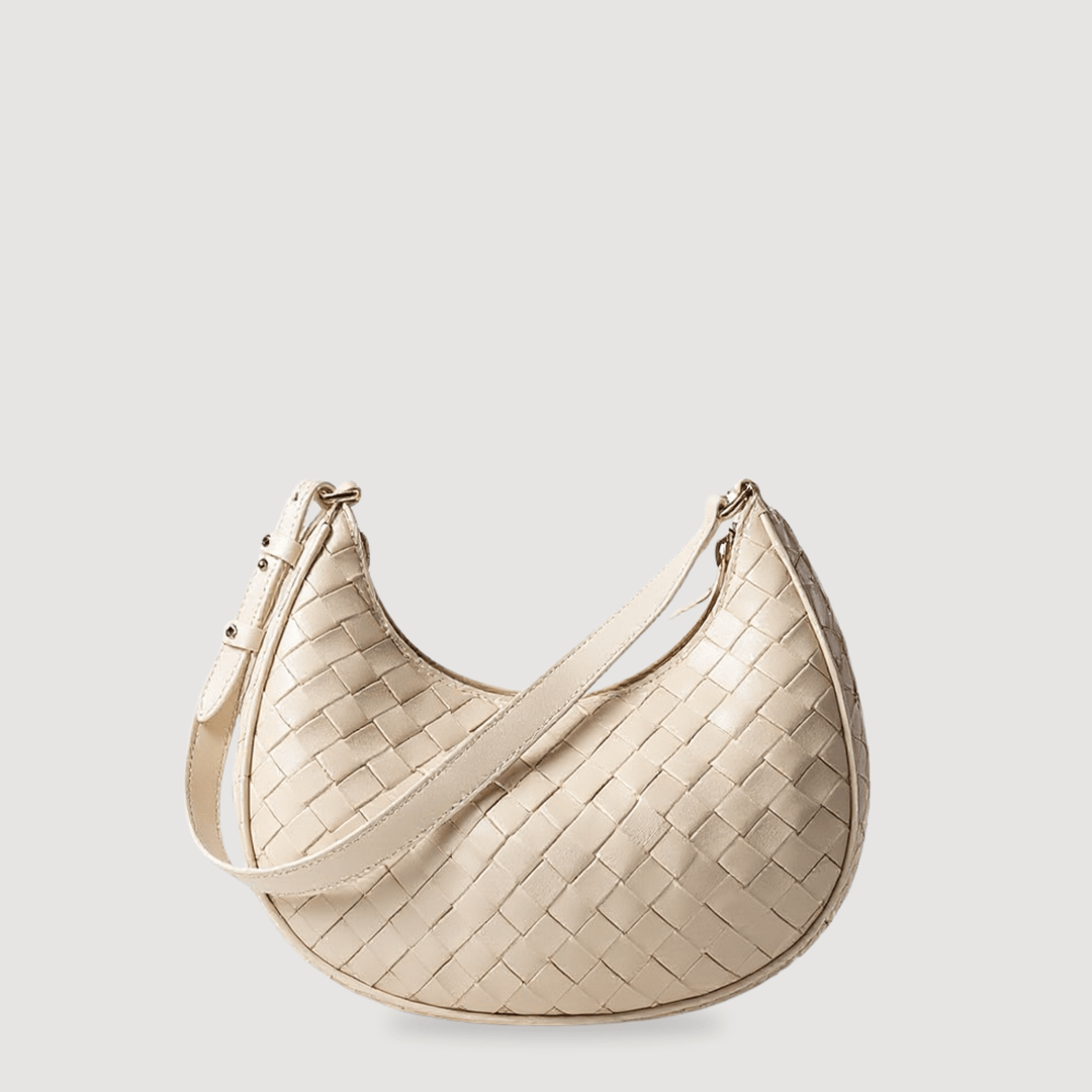 Its half-moon silhouette, its braided effect and its genuine leather material give it a sophisticated look, while remaining minimalist.